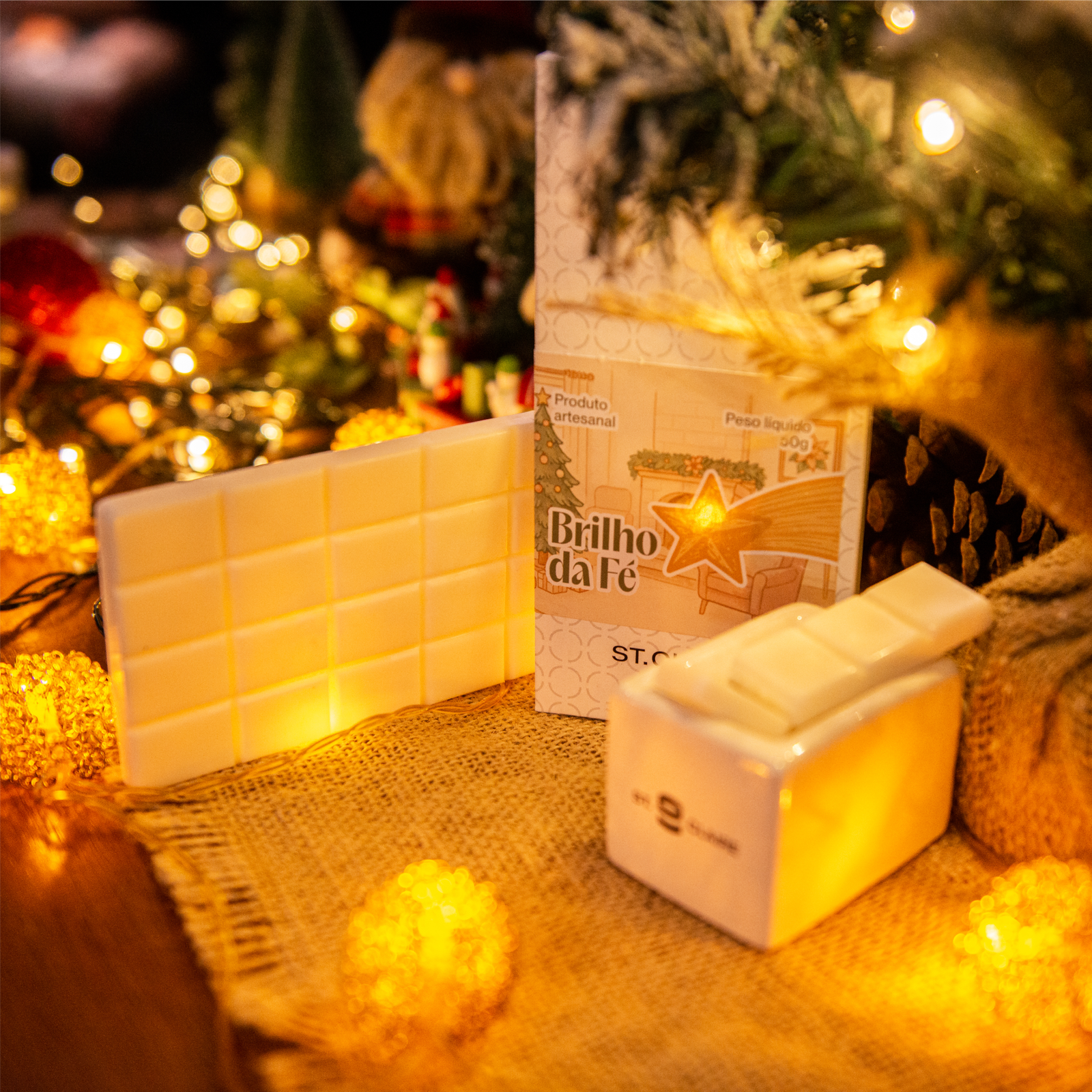Delicada, suave e luminosa, a fragrância Brilho da Fé ganha vida em nossa barra de wax melt de 85g, apresentada na elegante caixa estilo chocolate da St. Claire. É um aroma equilibrado e sereno, feito para transmitir paz, boas energias e harmonia ao ambiente — perfeito para acompanhar celebrações e momentos de reflexão.