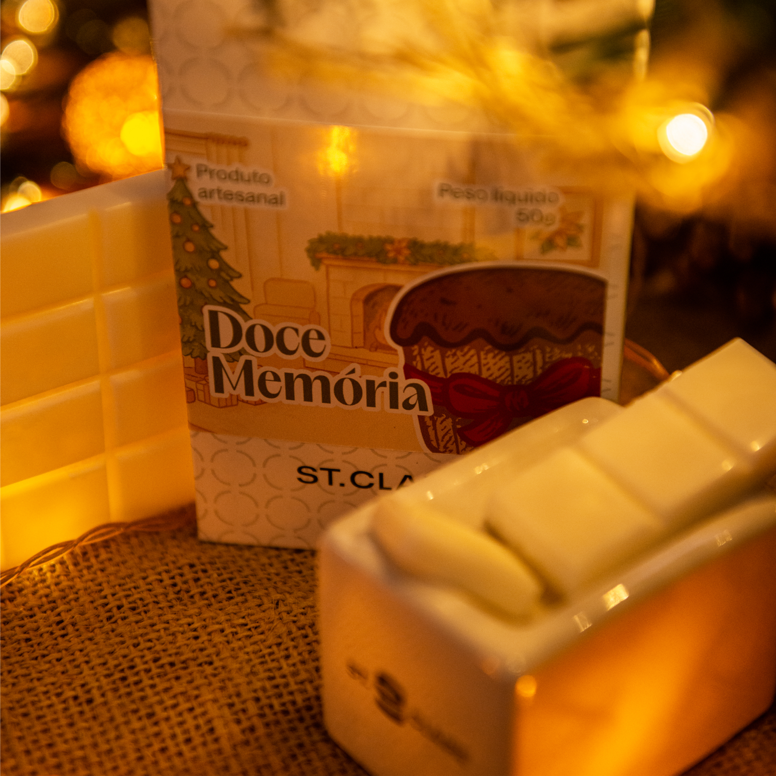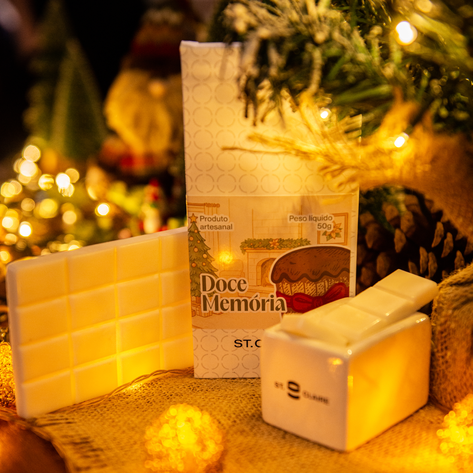 A Doce Memória chega em nossa charmosa barra de wax melt de 85g, embalada em uma delicada caixa estilo chocolate, perfeita para presentear ou colecionar.